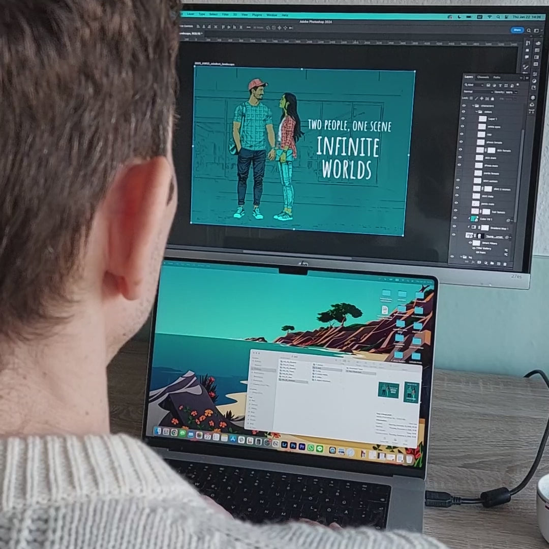 Two People, One Scene. Infinite Worlds – Motivational Design Postcard
